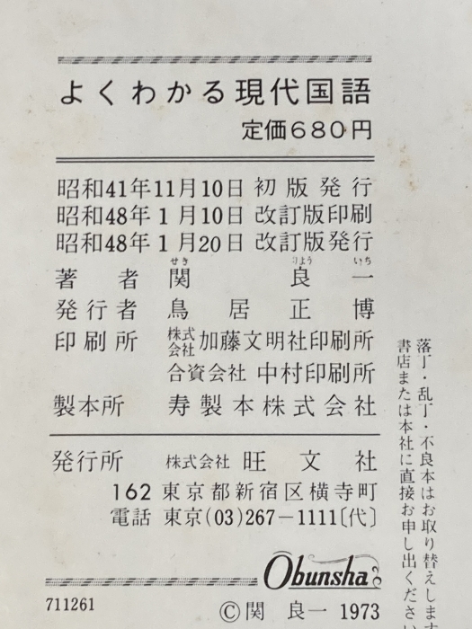 ※イタミ有 よくわかる現代国語 (1973年) 関 良一