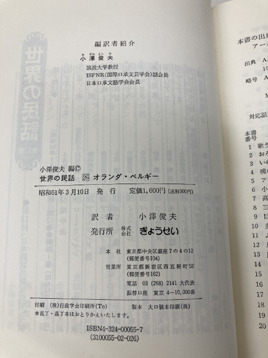 オランダ・ベルギー (世界の民話) ぎょうせい 小澤 俊夫
