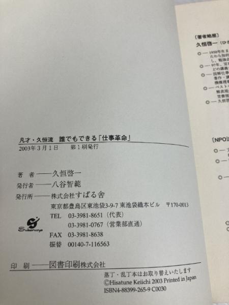 凡才・久恒流誰でもできる仕事革命 すばる舎 久恒 啓一