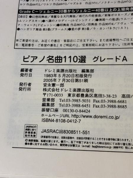 【※書き込み、イタミ有り】ピアノ名曲110選 グレードA ドレミ楽譜出版社 ドレミ楽譜出版社 編集部