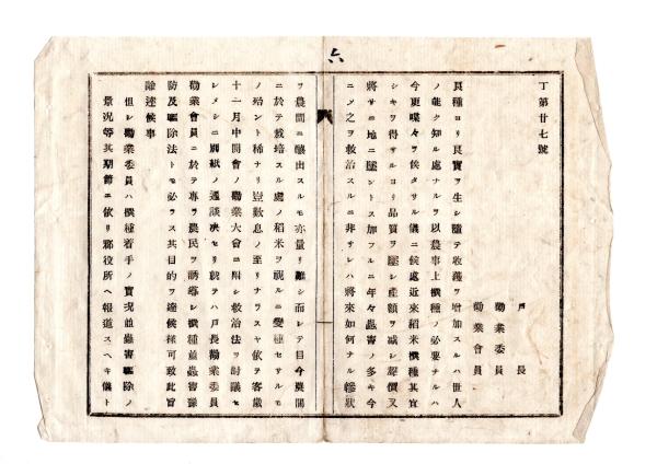 • 解説 N26012126○明治布告布達○稲栽培育成の指導書5件・抽穂(ぬきほ)の法・ 抽穂(ぬきほ)栽培法・塩膽(えんたん)水選種法・塩水選種法・虫害予防駆除法○明治19年 山形県飽海郡長大河平隆綱○和本古書古文書