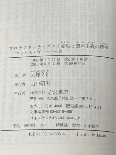 ※カバー無し プロテスタンティズムの倫理と資本主義の精神 (岩波文庫 白 209-3) 岩波書店 マックス ヴェーバー