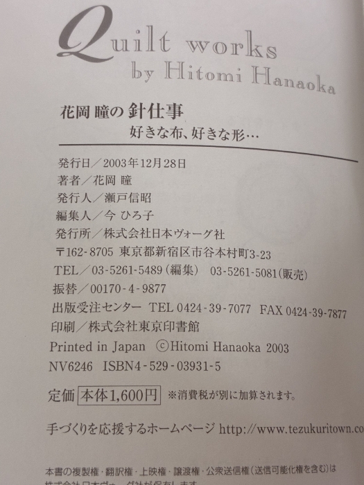 【※書き込み有り】花岡瞳の針仕事: 好きな布、好きな形… 日本ヴォーグ社 花岡 瞳