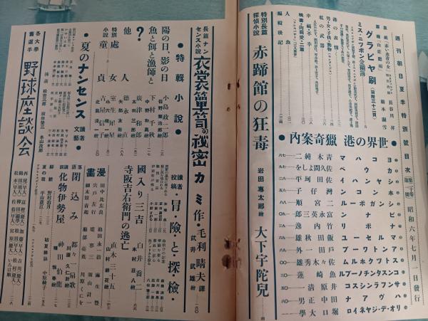 週刊朝日 夏季特別号 大下宇陀児『赤蹄館の狂毒』掲載