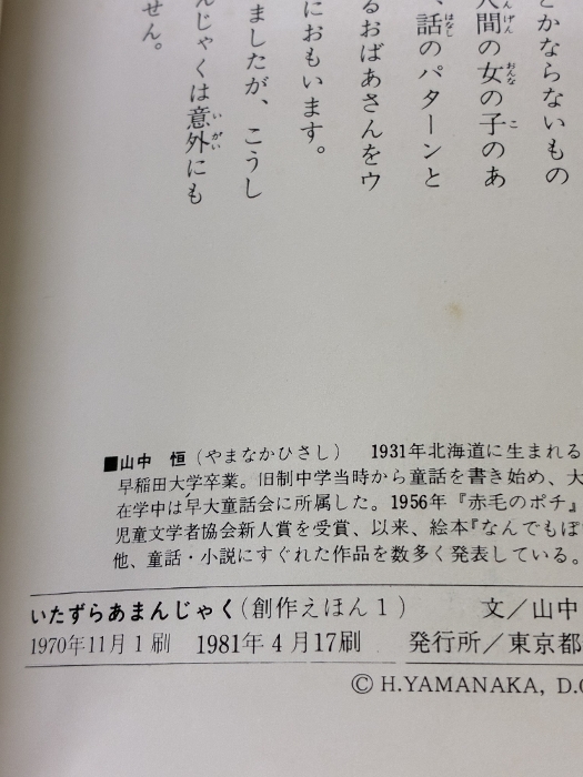 【※イタミ有り】いたずらあまんじゃく 創作えほん 偕成社 山中恒