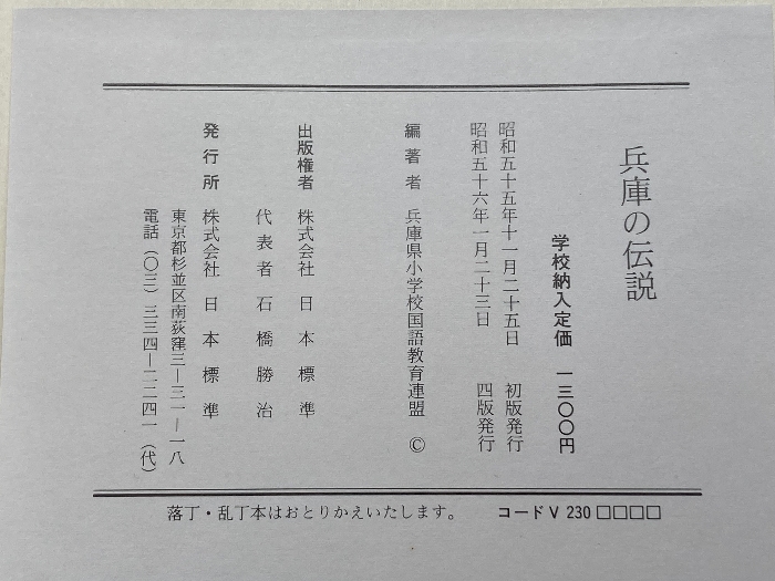 兵庫の伝説 兵庫県小学校国語教育連盟 日本標準