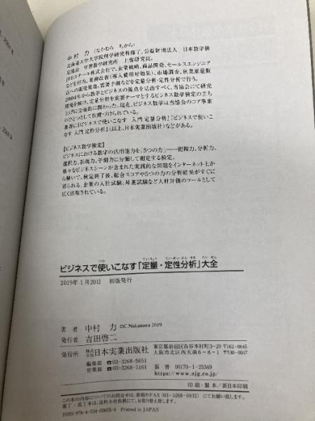 【※カバー無し】ビジネスで使いこなす「定量・定性分析」大全 日本実業出版社 中村 力