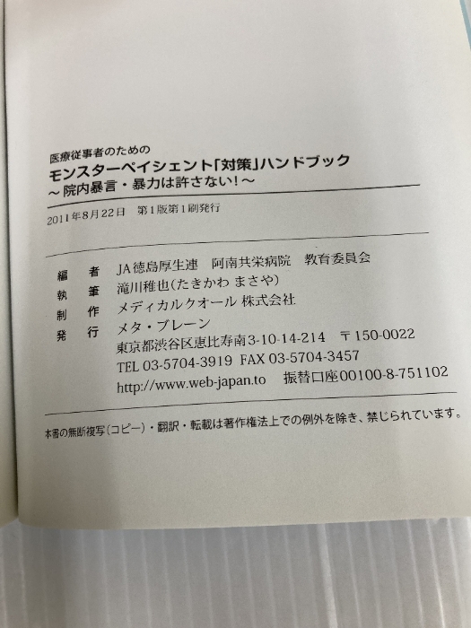 【※カバー無し】医療従事者のためのモンスターペイシェント「対策」ハンドブック―院内暴言・暴力は許さない! メタブレーン JA徳島厚生連阿南共栄病院教育委員会