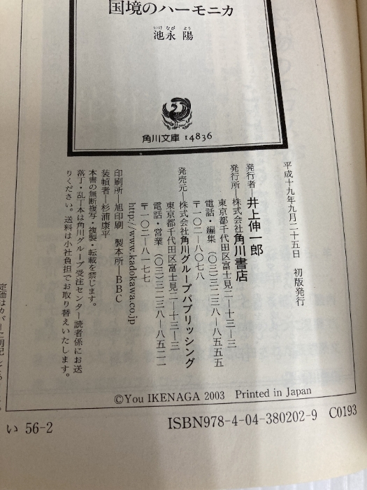 国境のハーモニカ (角川文庫 い 56-2) 角川書店 池永 陽