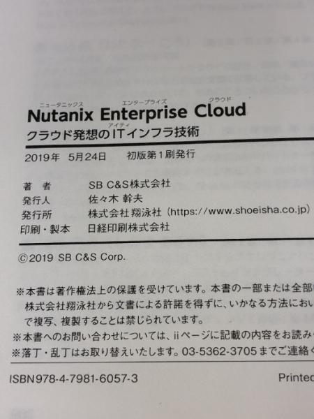 Nutanix Enterprise Cloud クラウド発想のITインフラ技術 翔泳社 SB C&S