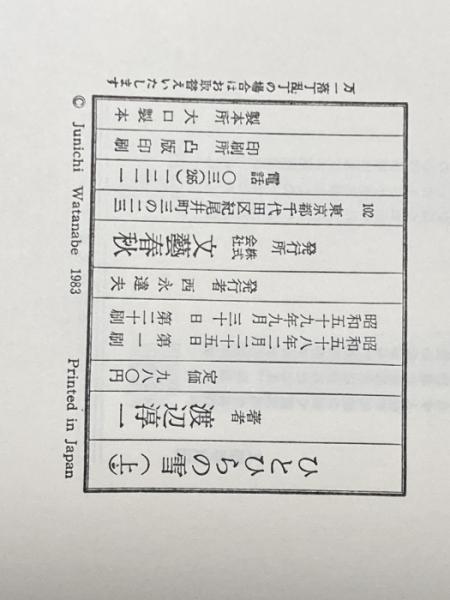 ひとひらの雪 上 文藝春秋 渡辺 淳一