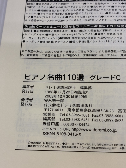 ピアノ名曲110選 グレードC ドレミ楽譜出版社 ドレミ楽譜出版社 編集部