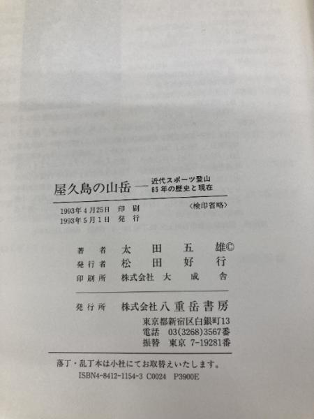 屋久島の山岳: 近代スポーツ登山65年の歴史と現在 八重岳書房 太田 五雄