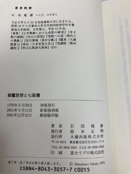 親鸞思想と七高僧 大蔵出版 石田 瑞麿