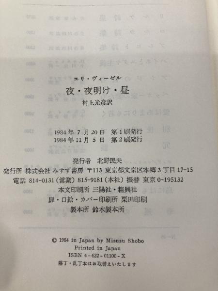 夜・夜明け・昼 みすず書房 エリ ヴィーゼル