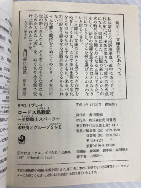 ロードス島戦記~英雄騎士スパーク~ RPGリプレイ (角川mini文庫 133) KADOKAWA 水野 良