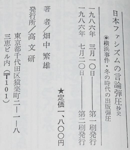 • 解説 日本ファシズムの言論弾圧 抄史 畑中繁雄 高文研 1986年7月第2刷 B6判帯付.