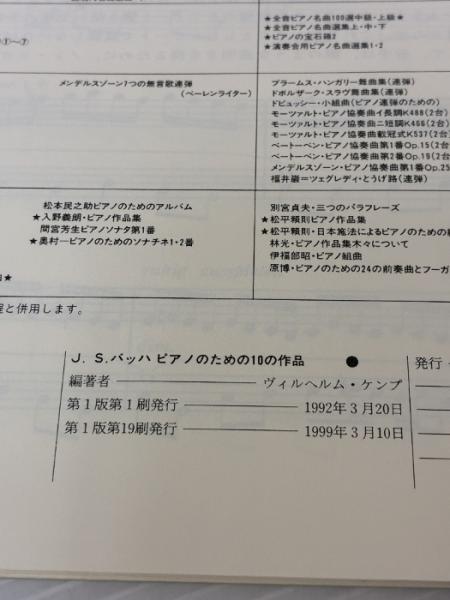 バッハ ピアノのための10の作品 ケンプ編 全音楽譜出版社
