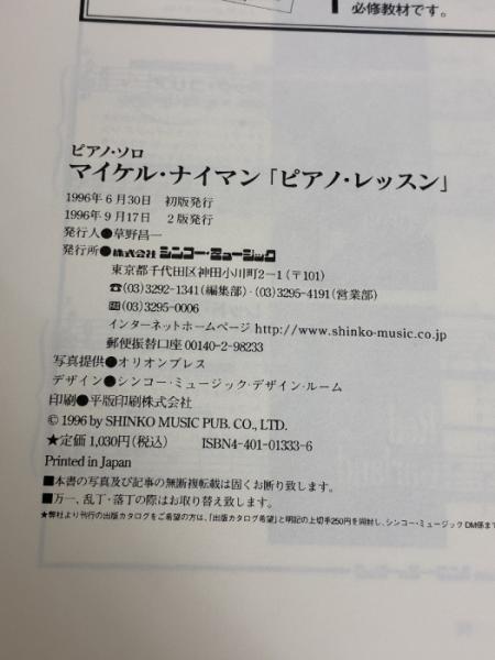 ピアノソロ マイケルナイマン「ピアノレッスン」 シンコーミュージック
