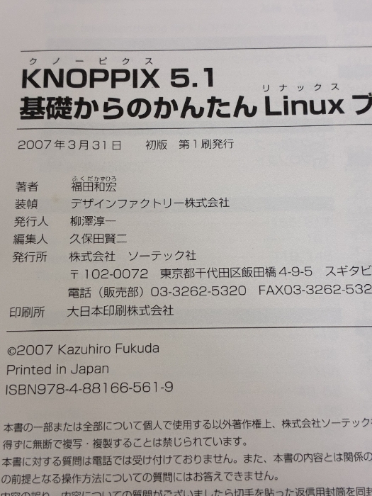 KNOPPIX 5.1 基礎からのかんたんLinuxブックDVD&CD-ROM付 ソーテック社 福田 和宏