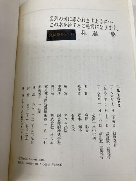 【※カバー無し】生死を超える 改訂版 オウム出版 麻原 彰晃