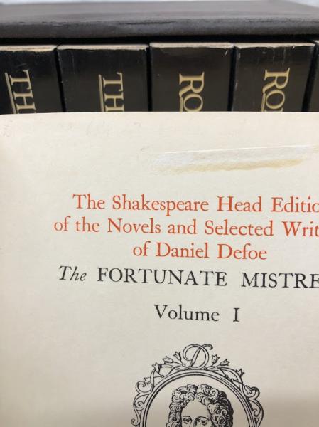 • 解説 状態は 函ヤケ汚痛・破れ少、本体表紙ヤケ・汚痛少、天地小口ヤケシミ汚、本文全体ヤケシミ汚少、The Fortuneate Mistress1見返しシール剥がし跡少・扉上部書込消し跡有、Robinson Cruesoe3一部ページに印刷時のヨレ有 です。その他本文は良好です。