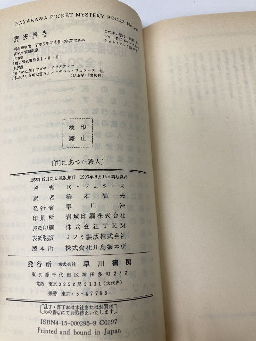 間にあった殺人 (ハヤカワ・ミステリ 295) 早川書房 エリザベス フェラーズ