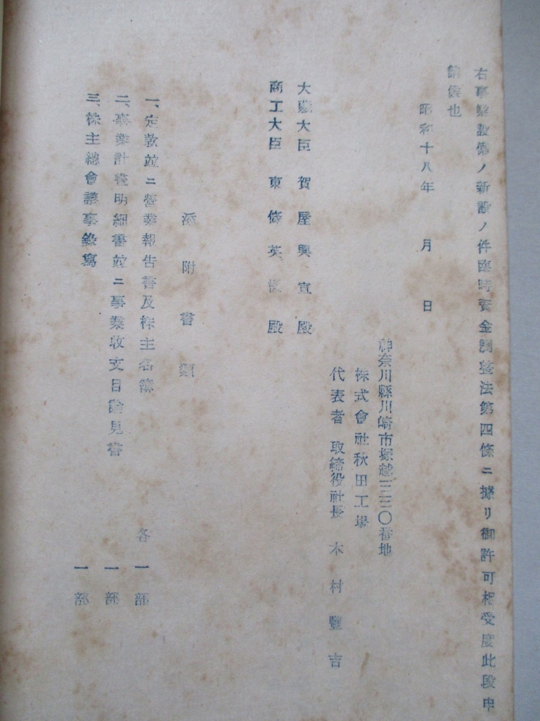 • 解説 一 會社ノ住所及商號又ハ名稱、二 會社ノ資本金額及拂込資本金額、三 事業設備ノ新設擴張又ハ改良ニ關スル計畫及其豫算ノ大要竝ニ資金ノ調達ノ方法。