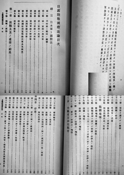 占領地住民ノ負担/宣教師並ニ清國陵寝及城市ノ保護/樺太占領/陸上中立関係/休戦及講話/外国新聞雑誌及学者批判