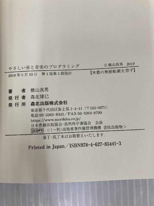 やさしい音と音楽のプログラミング 森北出版 横山 真男