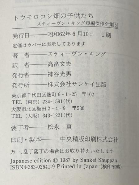 トウモロコシ畑の子供たち (サンケイ文庫 キ 1-5 海外ノベルス・シリーズ) サンケイ出版 スティーヴン キング