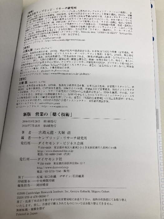 営業の「聴く技術」 新版―SPIN「4つの質問」「3つの説明」 ダイヤモンド社 古淵 元龍