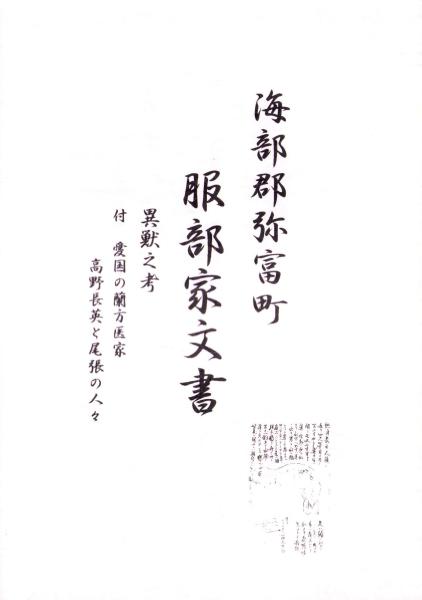 海部郡弥富町 服部家文書 -異獣之考 付・愛国の蘭方医家高野長英と尾張の人々-(愛知県)