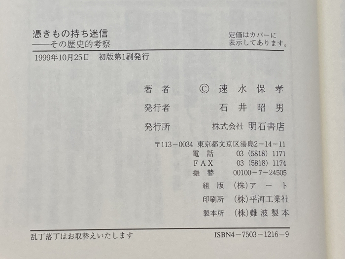 憑きもの持ち迷信 明石書店 速水 保孝
