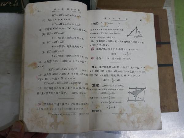 数学・幾何学に関するテキスト 6冊セット  ・實力養成算術 分類的系統的 長瀬直臣 ・新制高校数学 解析篇四 高橋進一 ・幾何学考え方と解き方 続編 藤森良蔵 ・幾何学新編 統合補習 廣瀬正雄 ・数学幾何学編1 中等学校教科書 ・数学解析編1 中等学校教科書  計6冊セット ヤケシミ汚多し難痛有  一部書込み記名有 S1右2