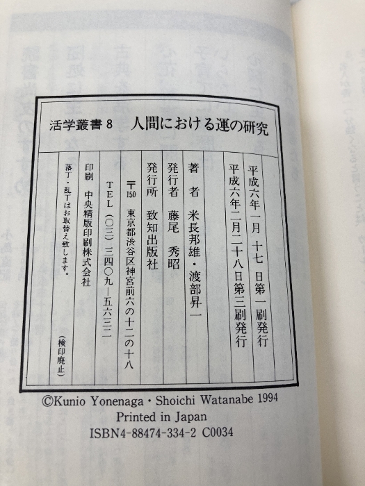 人間における運の研究 (活学叢書 8) 致知出版社 米長 邦雄