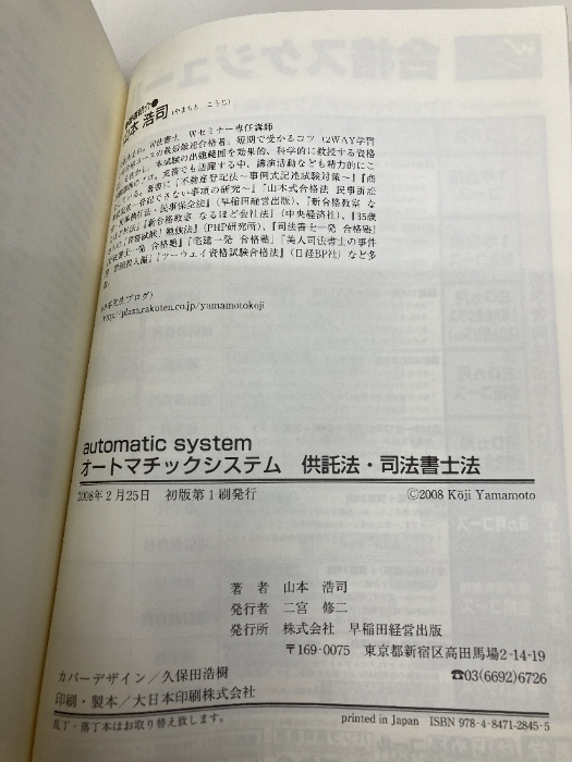 オートマチックシステム供託法・司法書士法: 司法書士 早稲田経営出版 山本 浩司