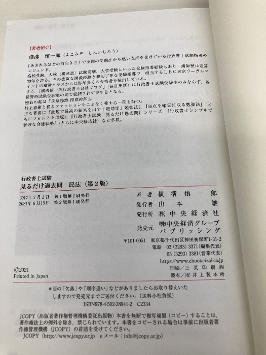 行政書士試験 見るだけ過去問 民法<第2版> 中央経済社 横溝慎一郎