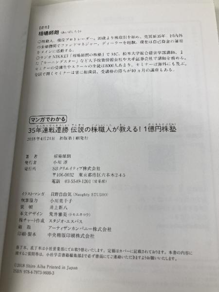 【※カバー無し】35年連戦連勝 伝説の株職人が教える!1億円株塾 SBクリエイティブ 相場 師朗