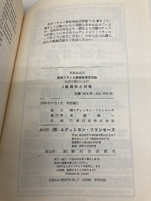 仏検合格のための傾向と対策1級: 文部科学省認定 実用フランス語技能検定試験 エディション・フランセーズ