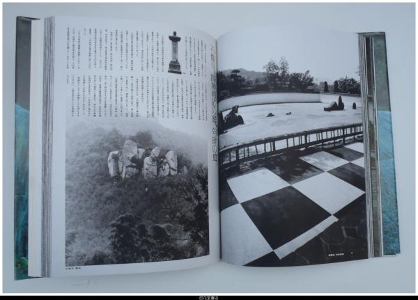 • 解説 初版 二重箱 カバー端破れ痛み有 天・小口シミ 344頁+折り込み設計図24図 モノクロ写真集 -神社庭園、重森三玲最後の一年の作品、創作活動の転換期にあたる作品を3章に分け24箇所掲載 -カラー図版32頁/モノクロ図版・解説228頁 第一章 神々へのアプローチ 9箇所(松尾大社、春日神社、貴船神社、豊国神社、住吉神社、石清水八幡宮、興禅寺、他)/第二章 作品1974 6箇所 本休寺、仙波庭、山月亭露地、福智院、他個人邸)/第三章 石との語らい 9箇所 正覚寺、福泉寺、白鷺庵仙楽庭、清楽寺、静岡ロイヤルホテル、四天王寺学園、他個人邸/第四章 新作庭記・作家論・年表・記録・図面 重森三玲「新作庭記」 田中比佐夫「造形作家重森三玲の基礎」 西沢文隆「重森三玲氏の作庭私観」 作庭・著作年表、作庭記録、設計図・実測図