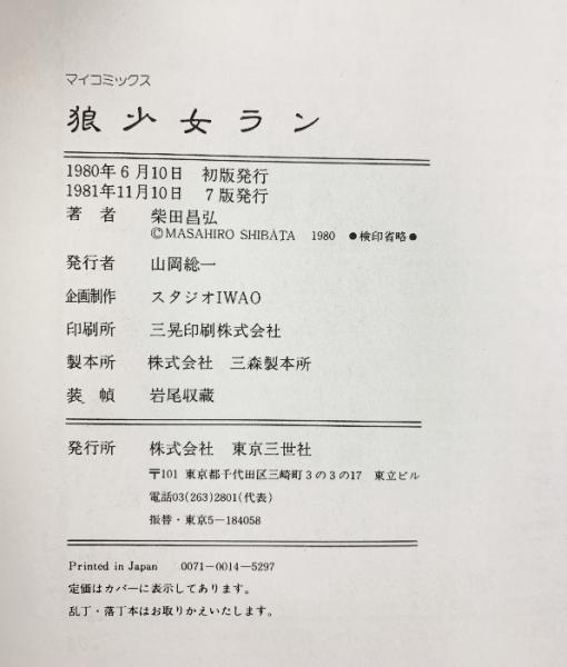 狼少女ラン SF連載『紅い牙』ESPの超傑作集大成 発行:東京三世社 著:柴田昌弘 1981年