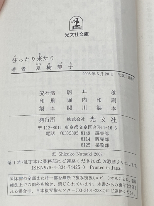 ※イタミ有 往ったり来たり (光文社文庫 な 1-30) 光文社 夏樹静子