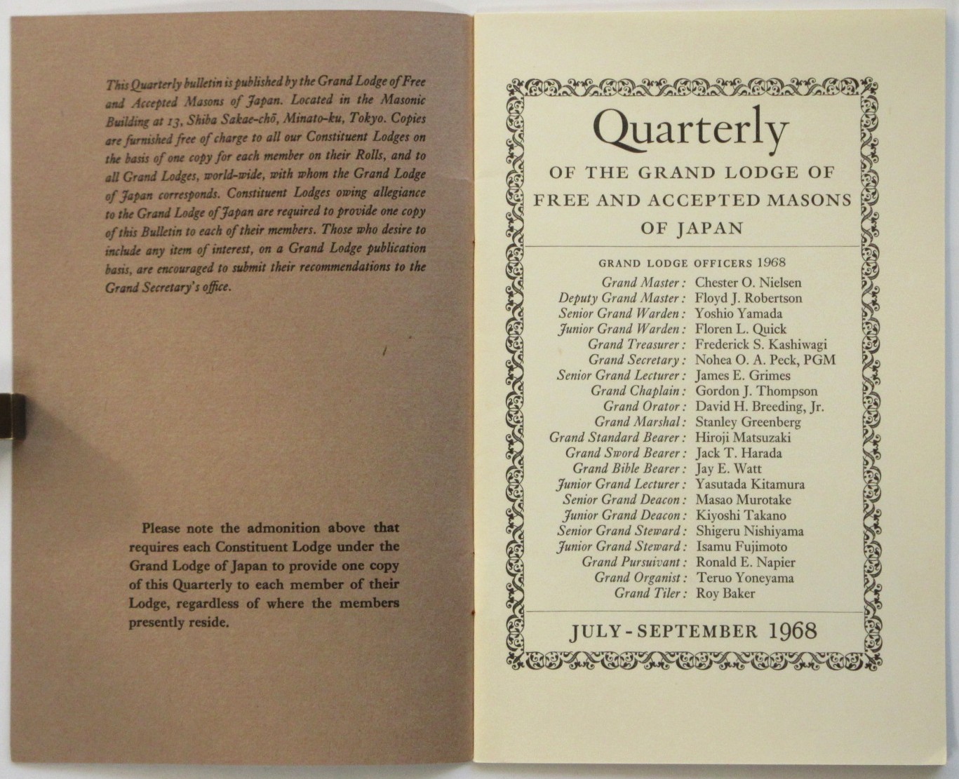 QUARTERY of the Grand Lodge of Free and Masons of Japan