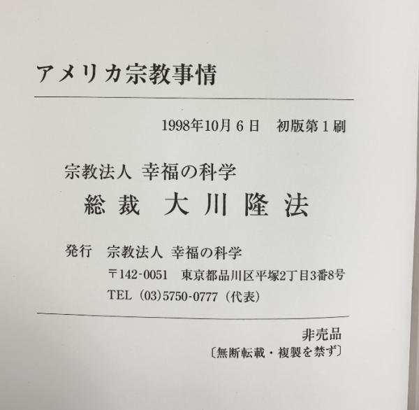 アメリカ宗教事情 発行:宗教法人幸福の科学 著:大川隆法 1998年 【非売品】