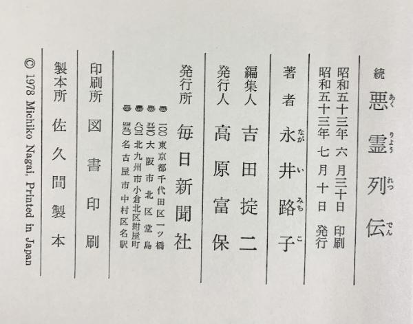 悪霊(+続編/全2冊セット)毎日新聞社 永井路子 昭和52年-53年