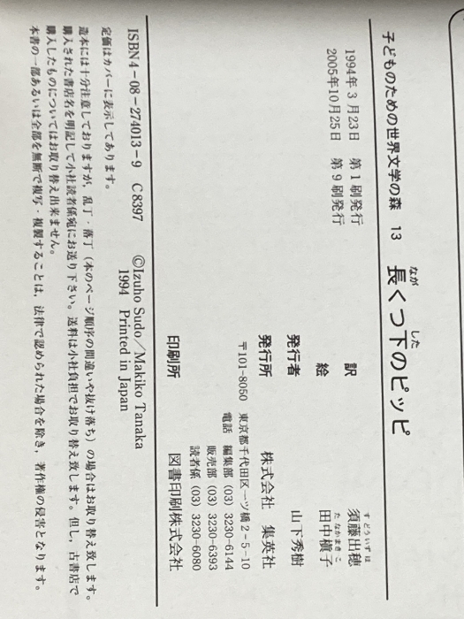 ※カバー無し 長くつ下のピッピ (子どものための世界文学の森 13) 集英社 アストリッド リンドグレーン