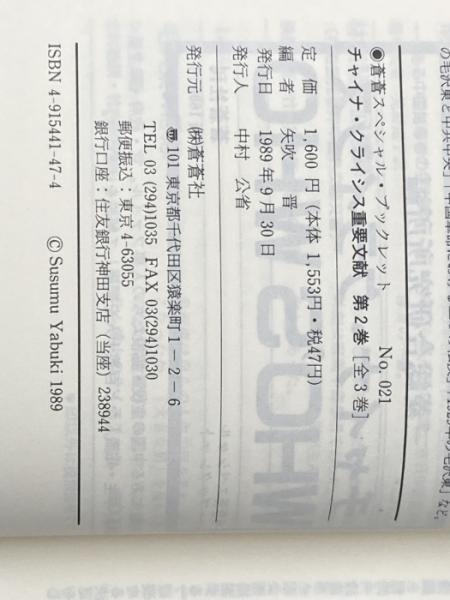 ※イタミ有 チャイナ・クライシス重要文献 第2巻 (蒼蒼スペシャル・ブックレット No. 21) 蒼蒼社 矢吹 晋