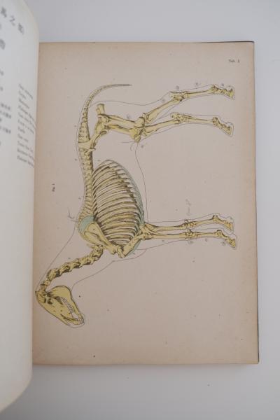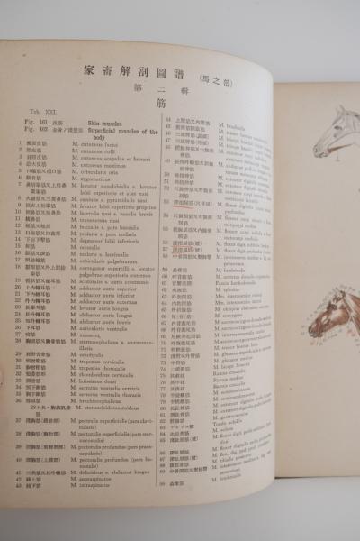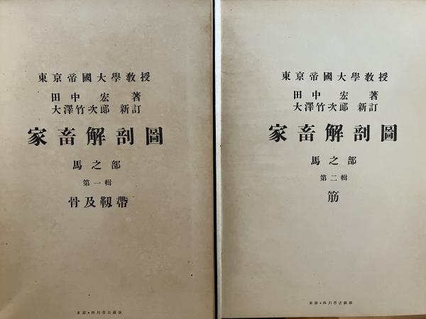 • 解説 本書は、東京帝国大学教授・田中宏による家畜解剖学の図譜で、馬の解剖構造を詳細な図版によって示した専門資料である。