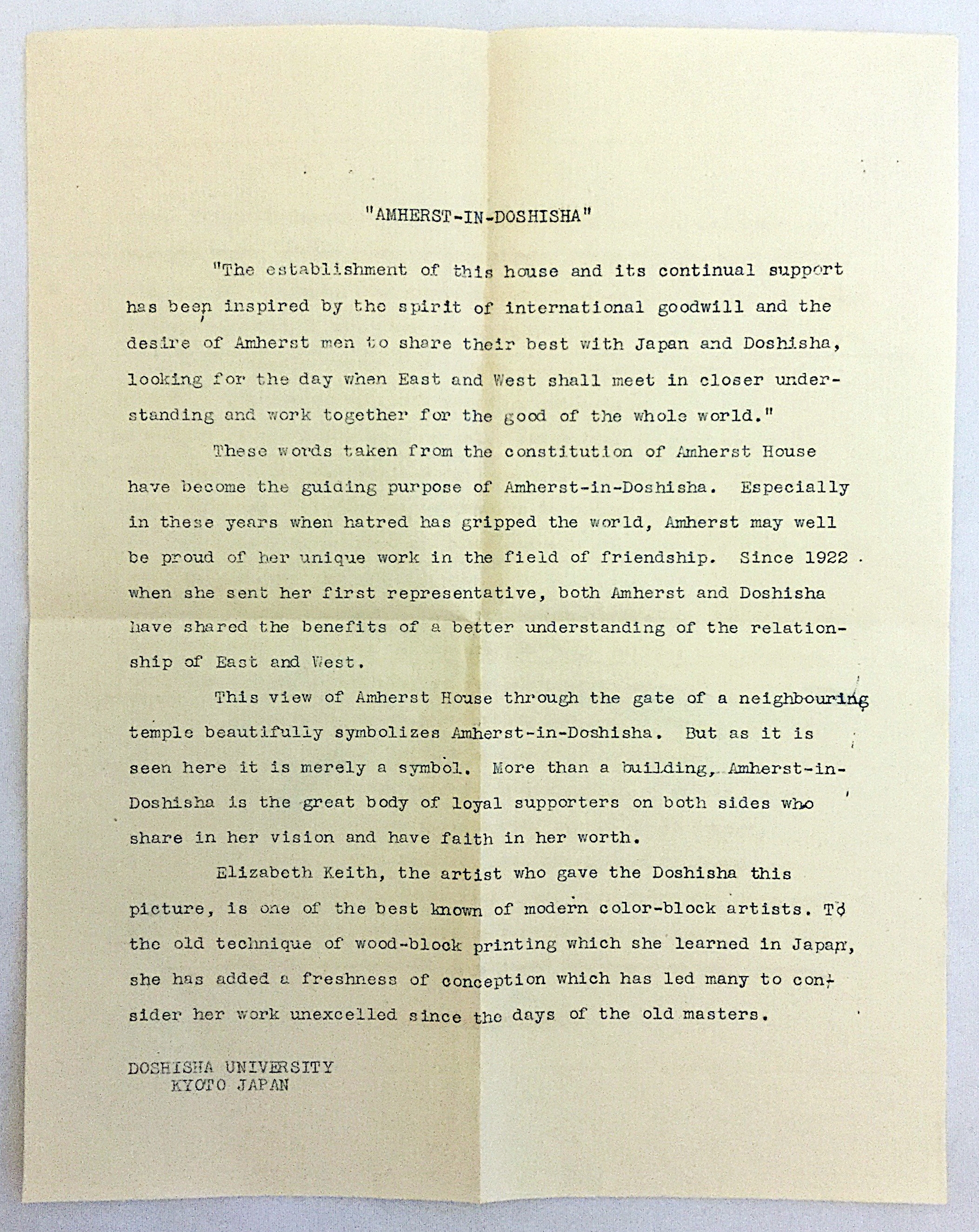 エリザベス・キース 小型木版画『Amherst in Doshisha』(同志社大学アーモスト館)